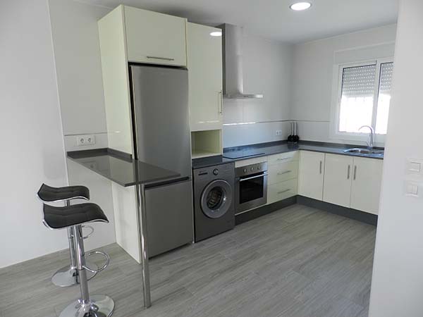 * Cocina: vitrocerámica, lavavajillas, lavadora, hormo, frigorífico, menaje completo